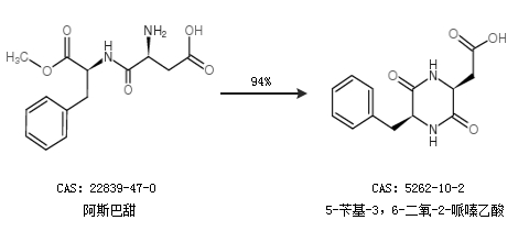 1.通过阿斯巴甜合成5-苄基-3,6-二氧-2-哌嗪乙酸,收率约94%;