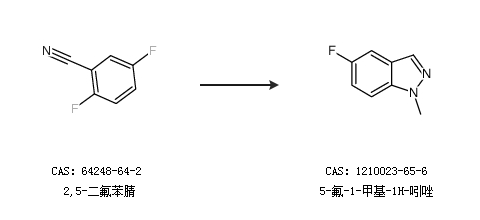 2.通过2,5-二氟苯腈合成5-氟-1-甲基-1H-吲唑