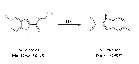 1.通过5-氟吲哚-2-甲酸乙酯合成5-氟吲哚-2-羧酸,收率约85%;
