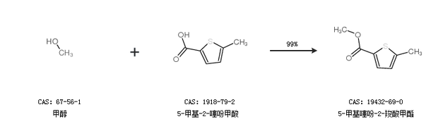 2.通过甲醇和5-甲基-2-噻吩甲酸合成5-甲基噻吩-2-羧酸甲酯,收率约99%;