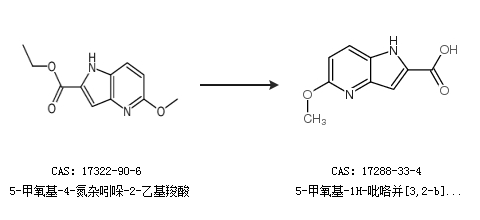 1.通过5-甲氧基-4-氮杂吲哚-2-乙基羧酸合成5-甲氧基-1H-吡咯并[3,2-b]吡啶-2-羧酸