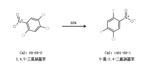 1.通过2,4,5-三氯硝基苯合成5-氯-2,4-二氟硝基苯,收率约68%;
