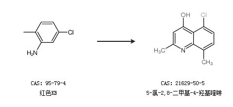 1.通过红色KB合成5-氯-2,8-二甲基-4-羟基喹啉