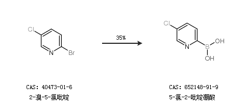 1.通过2-溴-5-氯吡啶合成5-氯-2-吡啶硼酸,收率约35%;