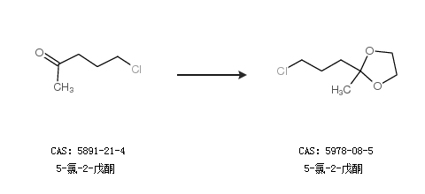 1.通过5-氯-2-戊酮和乙二醇合成5-氯-2-戊酮,收率约90%;