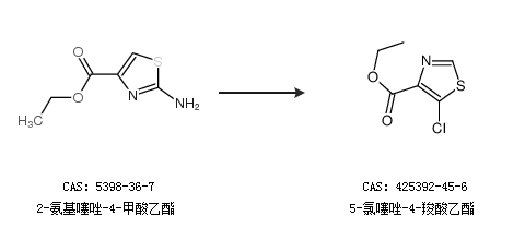 2.通过2-氨基噻唑-4-甲酸乙酯合成5-氯噻唑-4-羧酸乙酯