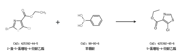 1.通过2-溴-5-氯噻唑-4-羧酸乙酯和苯硼酸合成5-氯噻唑-4-羧酸乙酯