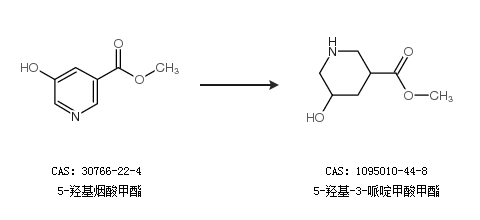 1.通过5-羟基烟酸甲酯合成5-羟基-3-哌啶甲酸甲酯