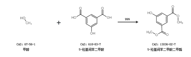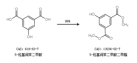 1.通过甲醇和5-羟基间苯二甲酸合成5-羟基间苯二甲酸二甲酯,收率约99%;