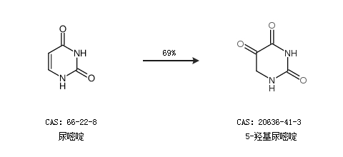 1.通过尿嘧啶合成5-羟基尿嘧啶,收率约69%;