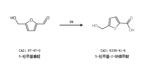 2.通过5-羟甲基糠醛合成5-羟甲基-2-呋喃甲酸,收率约9%;