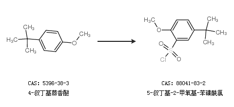 1.通过4-叔丁基茴香醚合成5-叔丁基-2-甲氧基-苯磺酰氯