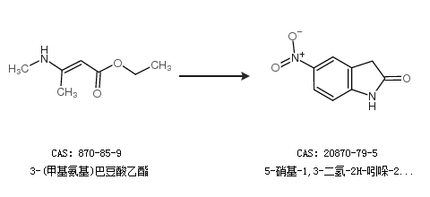 2.通过3-(甲基氨基)巴豆酸乙酯合成5-硝基-1,3-二氢-2H-吲哚-2-酮