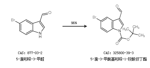 1.通过5-溴吲哚-3-甲醛合成5-溴-3-甲酰基吲哚-1-羧酸叔丁酯,收率约96%;