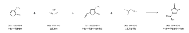 2.通过2-溴-3-甲基噻吩、亚氯酸钠、5-溴-4-甲基-2-噻吩甲醛和二氯甲基甲醚合成5-溴-4-甲基噻吩-2-羧酸