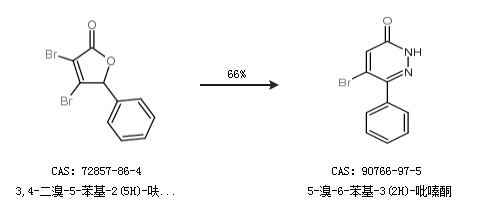1.通过3,4-二溴-5-苯基-2(5H)-呋喃酮合成5-溴-6-苯基-3(2H)-吡嗪酮,收率约66%;