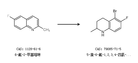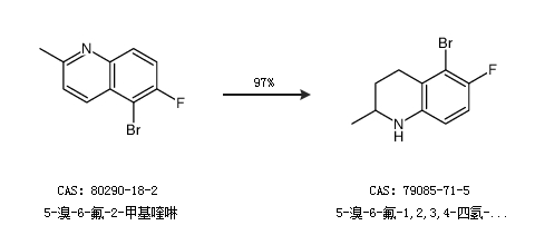 1.通过5-溴-6-氟-2-甲基喹啉合成5-溴-6-氟-1,2,3,4-四氢-2-甲基喹啉,收率约97%;