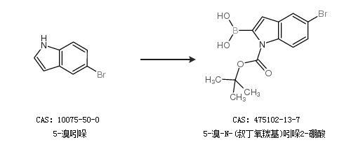 2.通过5-溴吲哚合成5-溴-N-(叔丁氧羰基)吲哚2-硼酸