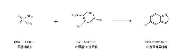 1.通过甲基磺酰胺和2-甲基-4-溴苯胺合成5-溴苯并异噻唑
