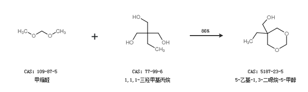 1.通过甲缩醛和1,1,1-三羟甲基丙烷合成5-乙基-1,3-二噁烷-5-甲醇,收率约86%;