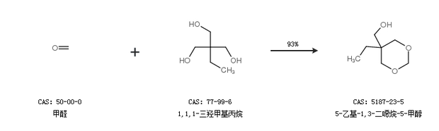 2.通过甲醛和1,1,1-三羟甲基丙烷合成5-乙基-1,3-二噁烷-5-甲醇,收率约93%;