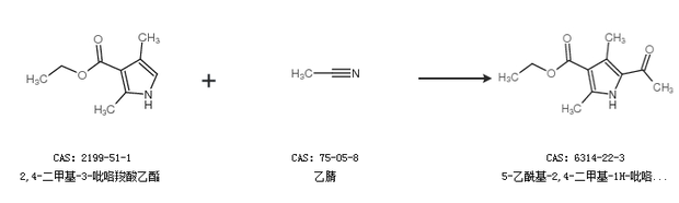 1.通过2,4-二甲基-3-吡咯羧酸乙酯和乙腈合成5-乙酰基-2,4-二甲基-1H-吡咯-3-羧酸乙酯