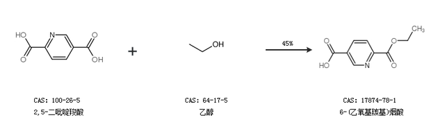 1.通过2,5-二吡啶羧酸和乙醇合成6-(乙氧基羰基)烟酸,收率约45%;