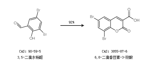 2.通过3,5-二溴水杨醛合成6,8-二溴香豆素-3-羧酸,收率约92%;