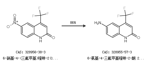 1.通过6-硝基-4-(三氟甲基)喹啉-2(1h)-酮合成6-氨基-4-三氟甲基喹啉-2-酮 2-羟基-4-三氟甲基-6-氨基喹啉,收率约86%;