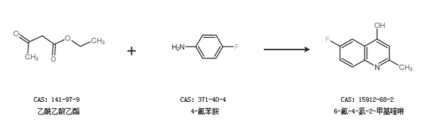 1.通过乙酰乙酸乙酯和4-氟苯胺合成6-氟-4-氢-2-甲基喹啉