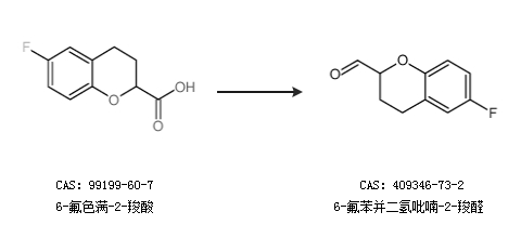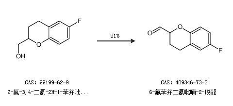 1.通过6-氟-3,4-二氢-2H-1-苯并吡喃-2-甲醇合成6-氟苯并二氢吡喃-2-羧醛,收率约91%;