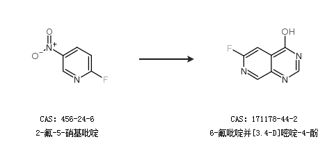 2.通过2-氟-5-硝基吡啶合成6-氟吡啶并[3.4-D]嘧啶-4-酚