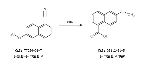 1.通过1-氰基-6-甲氧基萘合成6-甲氧基萘甲酸,收率约80%;