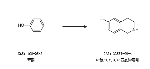 1.通过苯酚合成6-氯-1,2,3,4-四氢异喹啉