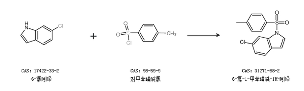 1.通过6-氯吲哚和对甲苯磺酰氯合成6-氯-1-甲苯磺酰-1H-吲哚