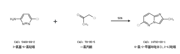 1.通过3-氨基-6-氯哒嗪和一氯丙酮合成6-氯-2-甲基咪唑并[1,2-b]吡嗪,收率约50%;