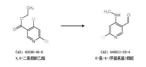 2.通过4,6-二氯烟酸乙酯合成6-氯-4-(甲基氨基)烟醛