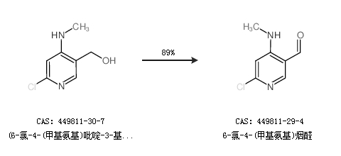 1.通过(6-氯-4-(甲基氨基)吡啶-3-基)甲醇合成6-氯-4-(甲基氨基)烟醛,收率约89%;