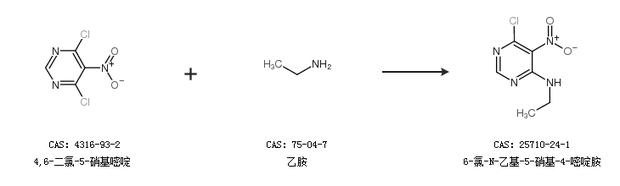1.通过4,6-二氯-5-硝基嘧啶和乙胺合成6-氯-N-乙基-5-硝基-4-嘧啶胺
