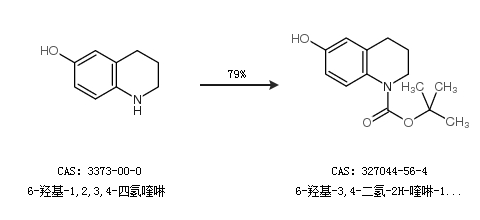 1.通过6-羟基-1,2,3,4-四氢喹啉合成6-羟基-3,4-二氢-2H-喹啉-1-羧酸叔丁酯,收率约79%;