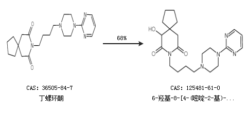 2.通过丁螺环酮合成6-羟基-8-[4-(嘧啶-2-基)-1-哌嗪基丁基]-8-氮杂螺[4,5]癸烷-7,9-二酮,收率约68%;