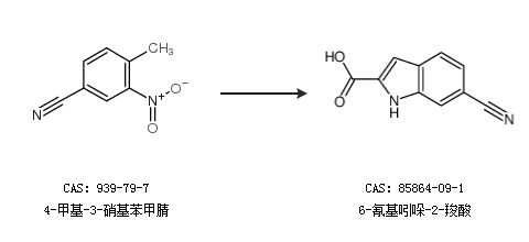 2.通过4-甲基-3-硝基苯甲腈合成6-氰基吲哚-2-羧酸