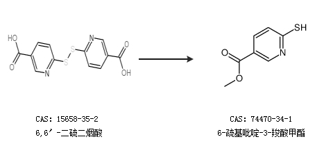 2.通过6,6ˊ-二硫二烟酸合成6-疏基吡啶-3-羧酸甲酯