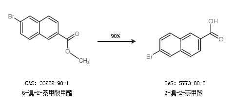 1.通过6-溴-2-萘甲酸甲酯合成6-溴-2-萘甲酸,收率约90%;