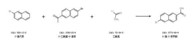 2.通过2-溴代萘、2-乙酰基-6-溴萘和乙酰氯合成6-溴-2-萘甲酸