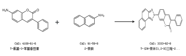1.通过7-氨基-3-苯基香豆素和2-萘胺合成7-(2H-萘并[1,2-D]三唑-2-基)-3-苯基-2H-1-苯并吡喃-2-酮