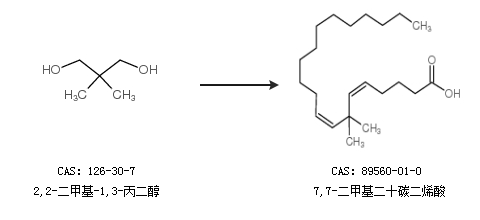 1.通过2,2-二甲基-1,3-丙二醇合成7,7-二甲基二十碳二烯酸