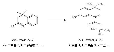 2.通过4,4-二甲基-3,4-二氢喹啉-2(1h)-酮合成7-氨基-4,4-二甲基-3,4-二氢-2H-喹啉-1-羧酸叔丁酯