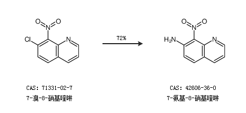 2.通过7-溴-8-硝基喹啉合成7-氨基-8-硝基喹啉,收率约72%;