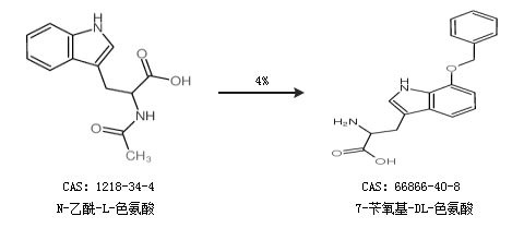 1.通过N-乙酰-L-色氨酸合成7-苄氧基-DL-色氨酸,收率约4%;